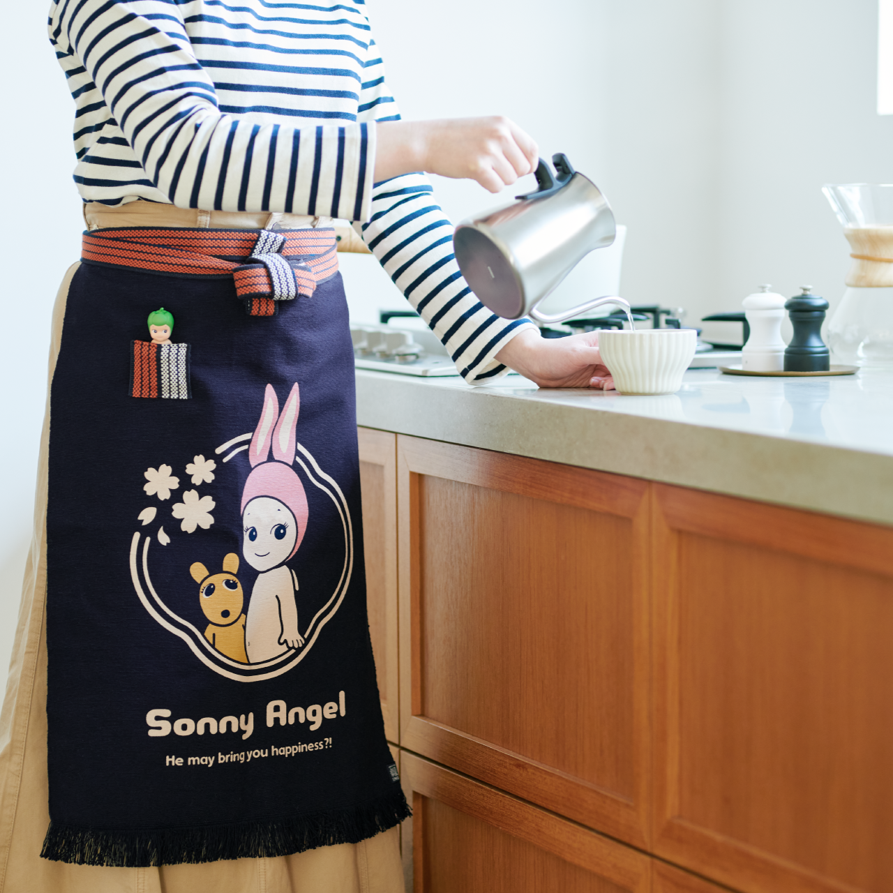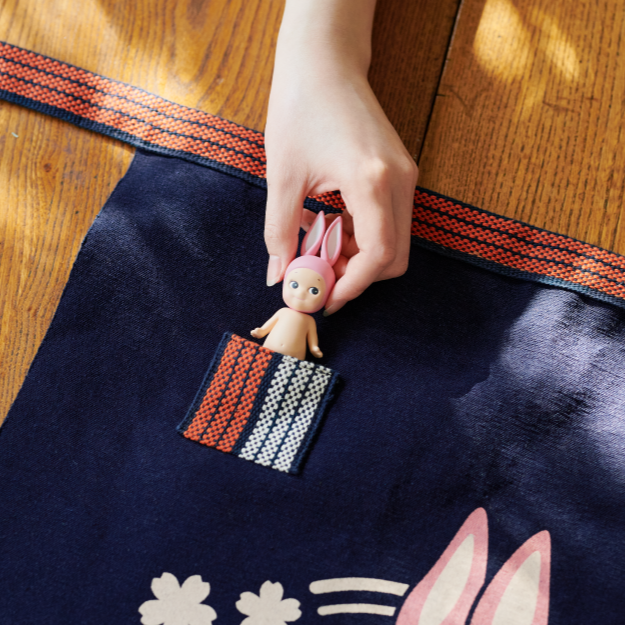 Sonny Angel se une a la marca japonesa Anything, especialista en delantales tradicionales maekake. Hecho en Toyohashi (prefectura de Aichi), este delantal está tejido en los oficios centenarios, según el conocimiento artesanal transmitido de generación en generación.